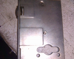 Замок врезной падающий ключ.меж осевое крепление по центрам отверстий 13 см. ключевое удаление 3 см.