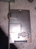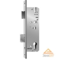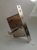 Замок врезной сувальдный для металлических деверей без ручек с креплениями под тяги,перекодируемый, без торцевой планки. Удаление ключевого отверстия - 64 мм.