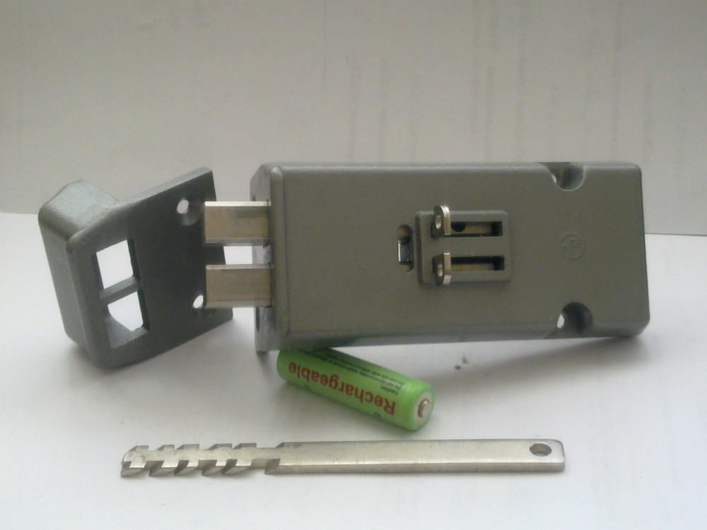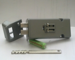 Замок врезной падающий ключ.меж осевое крепление по центрам отверстий 13 см. ключевое удаление 3 см.