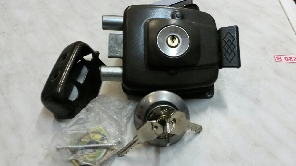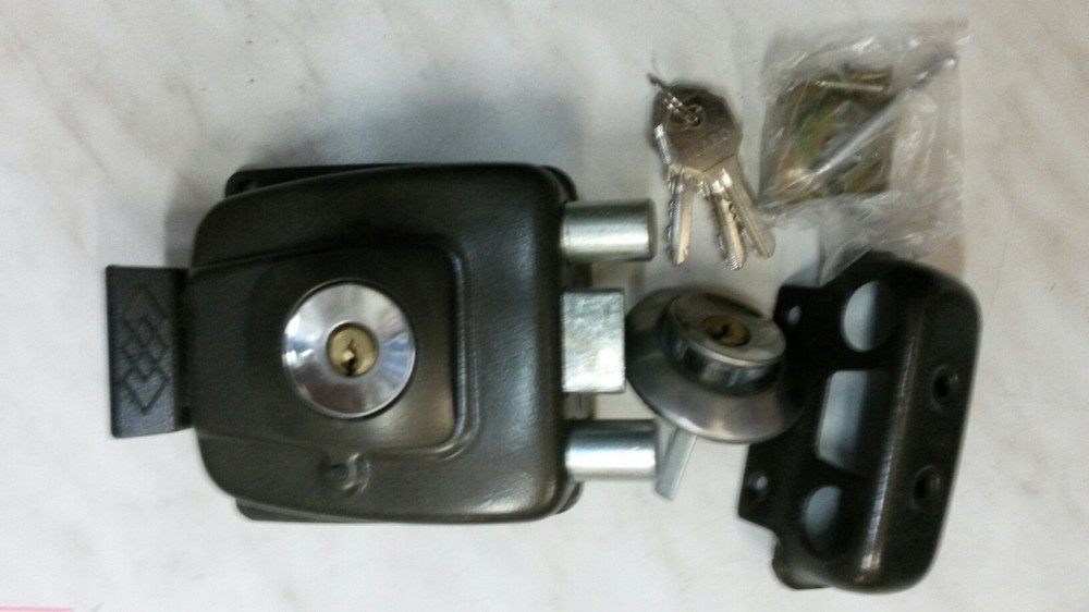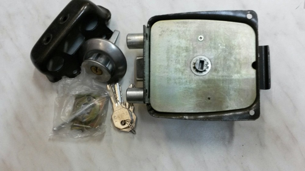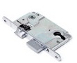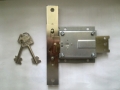 Замок для межклмнатных дверей с отдельной защелкой и ригалем. Межосевое расстояние-85 мм, удаление ключевого отверстия-50 мм. Цвет-хром